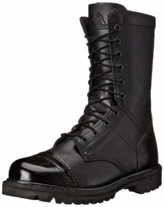This surprisingly fashionable pair of hardened leather boots is made to protect. They have a patent leather cap toe that will prevent splatters from harming your foot as well as an all leather design. Their long 10” design is meant to fully cover the leg and provide a level of full-coverage of sorts. The EVA footbed will also ensure that the foot is incredibly comfortable during any o your welding activities. Considering the fact that you will likely spend a great deal of your time welding on your feet, this can be a great help. The rubber lugged outsole is also helpful for allowing you to maintain your grip during work.